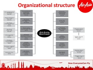AirAsias structure is following the basis of functional. 100 PT AirAsia Com Indonesia AA Com Travel Philippines Inc 100 AirAsia Com Hong Kong Limited 100 AirAsia Com Guangzhou Co. Vision Mission and Values.